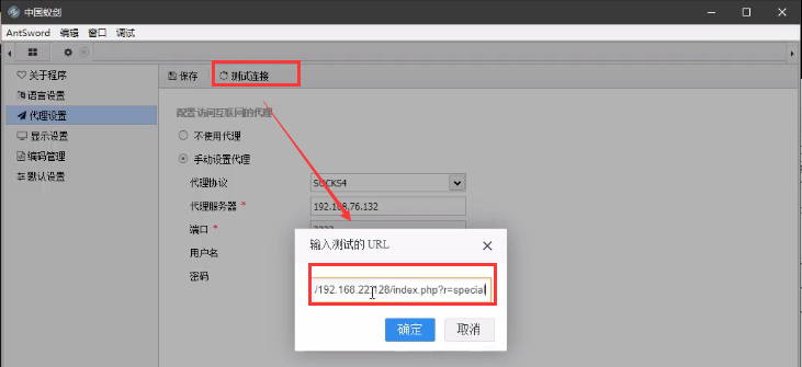 <3>配置蚁剑代理,测试连接,保存连接,访问,拿到webshell。