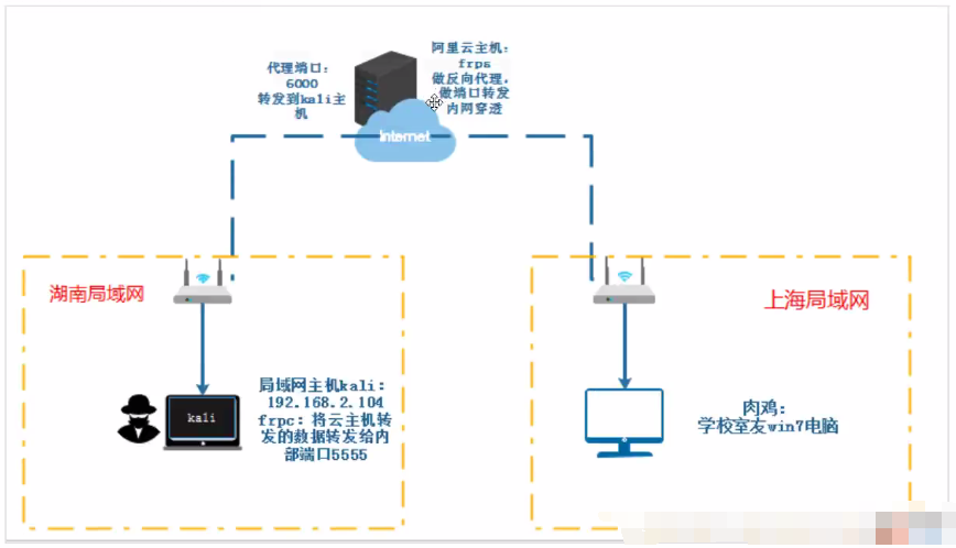 案例2-内网穿透Frp自建跳板测试-两个内网通讯上线