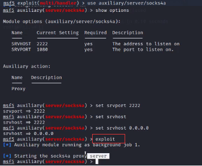 use auxiliary/server/socks4a set srvport 2222 exploit