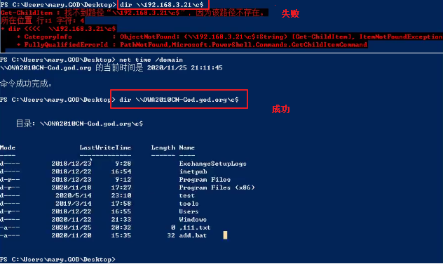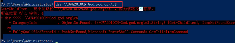 dir \\OWA2010CN-God.god.org\c$ //利用 dir \192.168.3.21\c$