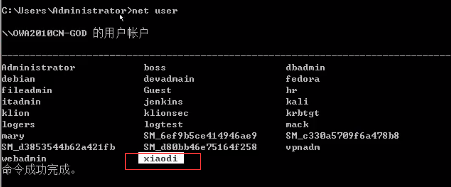net user 查看用户中是否多了一个xiaodi net user xiaodi 查看xiaodi账户创建时间是否为刚才计划任务的时间 net user xiaodi /del 不需要了的话可以删除