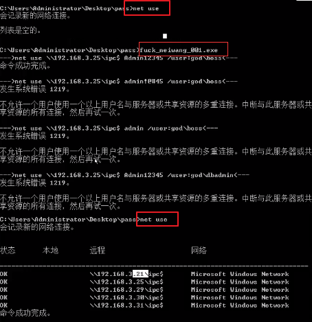- (5) 1219:提供的凭据和已存在的凭据集冲突,说明已建立IPC$,需要先删除