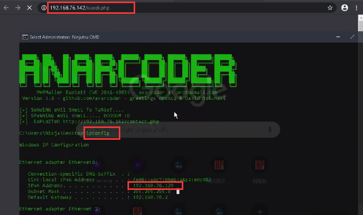 <1>探针IP及端口。直接探针当前自己机器IP所在网段,因为靶机就在同一网段。这里我们使用的忍者系统。