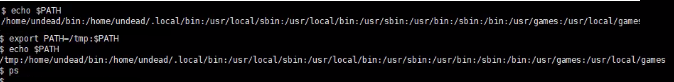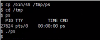 <4>增加环境变量。export PATH=/tmp:$PATH,环境变量里新增/tmp目录,此时执行ps命令就相当于直接执行sh命令了。