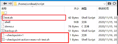 这是为什么呢?原因是定时任务打包时使用了*将整个文件夹下的文件打包,而当系统真正执行打包操作时,会将目录下的所有文件名一个一个传参给*执行打包操作。前几个文件都没问题,但是当打包到–checkpoint=1文件和–checkpoint-action=exec=sh test.sh文件时,执行的相当于
