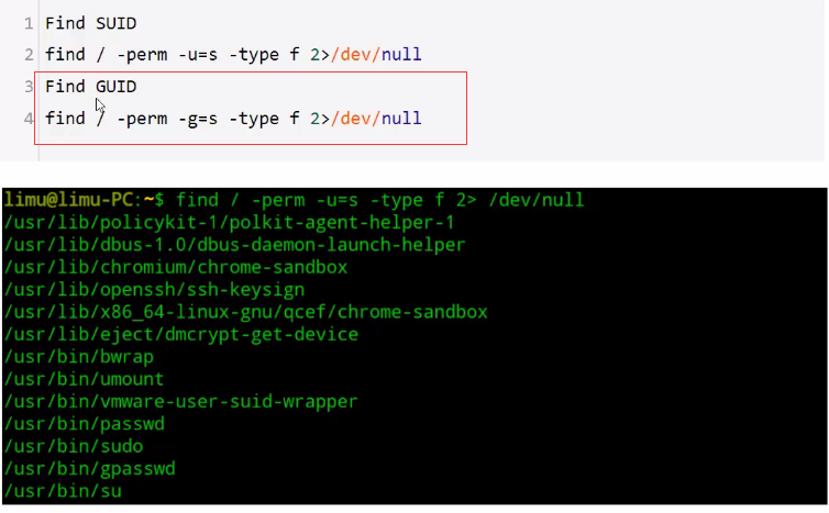 - guid提权(与suid提权同理,只是搜索语句不同,如图4.4)