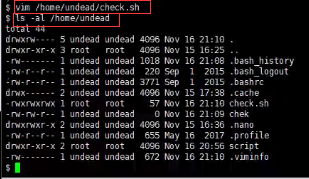 <2>测试check.sh文件是否有权限问题。可以以普通用户身份直接修改check.sh文件,如果能修改成功,说明存在权限问题,也可以直接执行ls -l check.sh,查看check.sh的权限,如果是-rwxrwxrwx,说明存在权限问题。只要存在权限问题,就可利用提权。