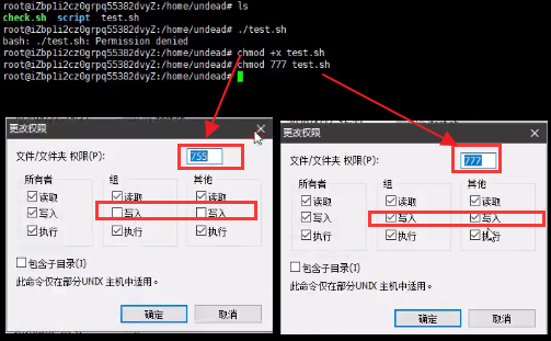 原理解读:管理员正常创建一个文件test.sh时,默认是没有执行权限的,此时管理员若想执行这文件,必须给它赋执行权限,正常的赋权命令是chmod +x test.sh,这样就可以执行test.sh并且组和其他成员无法修改覆盖这个文件(即写权限),但是粗心的管理员会直接chmod 777 test.sh,这样虽然也可以实现执行test.sh的目的,但是会导致权限扩大,即组和其他成员都可以对文件修改覆盖,造成风险。