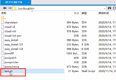 定时任务中的test.sh没有写绝对路径,但我们知道它默认就是调用/usr/local/bin目录下test.sh。(我们自己写来测试用的)