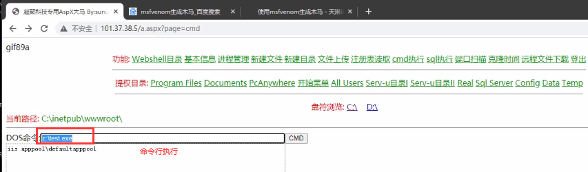 <2>制作后门木马并上传。这里我们用的是案例3中上传的木马。(名字可以随便起)