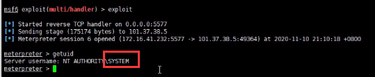总之,我对这个的理解是通过中间人攻击,将COM(NT\\SYSTEM权限)在第二步挑战应答过程中认证的区块改成自己的区块获取SYSTEM令牌,然后利用msf的模仿令牌功能模仿SYSTEM令牌。