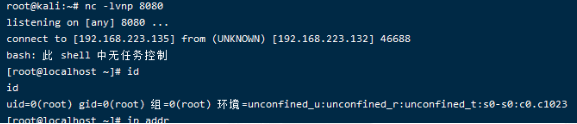 nc监听端口已经反弹回来shell(反弹回shell需要的时间比较久,大概几分钟的样子):