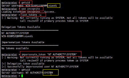 <5>执行以下命令,利用模块,窃取令牌,提权成功。