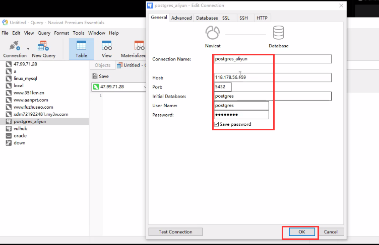 <1>首先使用Navicat工具连接到PostgreSQL数据库
