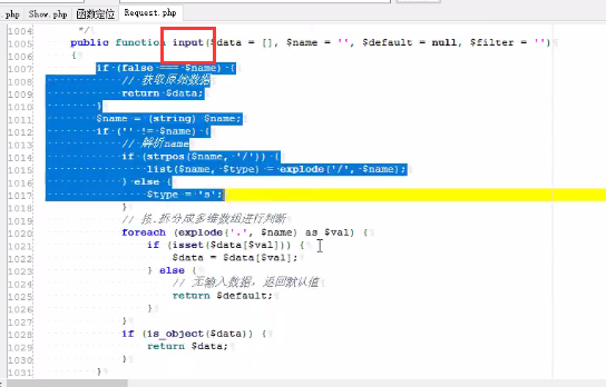 方法2:刷新页面,查看调试信息-流程页面,找到网址对应的文件,一步到位。–>缺点是只能找到对应的文件show.php,至于对应的方法还需进一步分析。