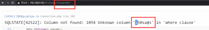 <7>尝试注入测试,将id修改为150sads,发现值未被过滤,直接被带入SQL语句。