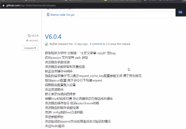 <4>查看框架历次更新说明,寻找可能的漏洞点。重点看每次版本迭代都修改了哪些代码,找到对应漏洞点。很多漏洞可能网上并没有发布,通过这种方法可以分析出来。
