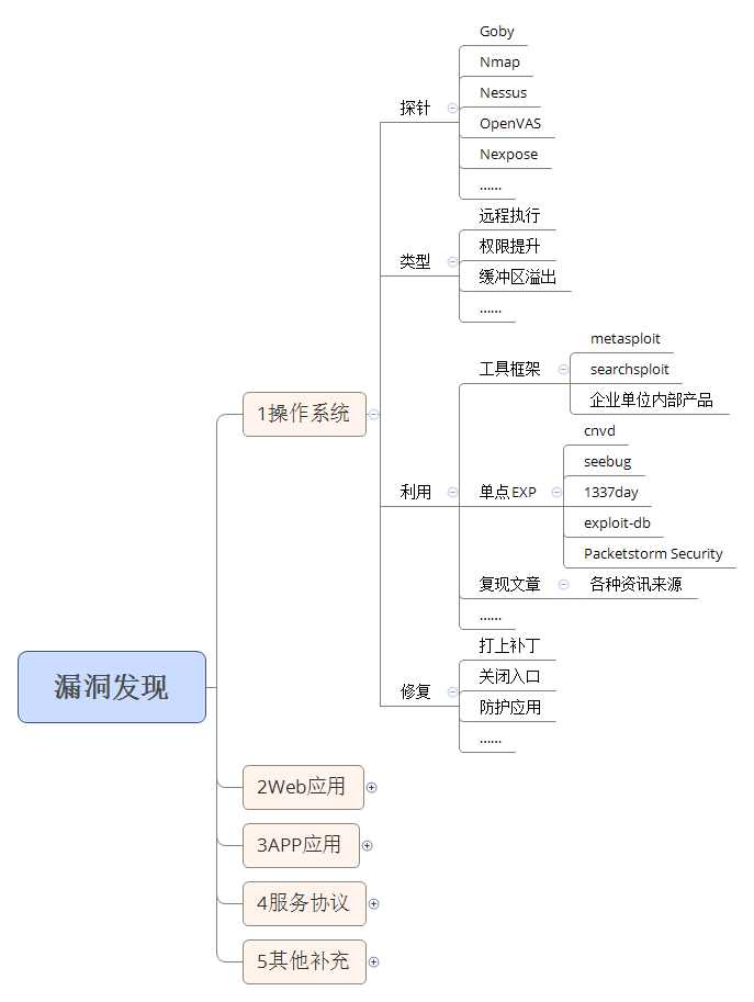 - 使用工具框架,包括:metasploit、searchsploit、企业单位内部产品等