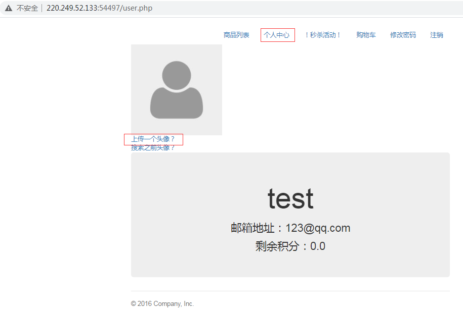 注册并登陆一个用户,进入个人中心,发现有上传点