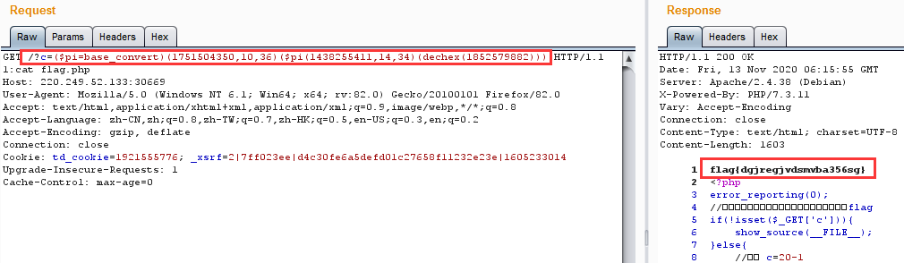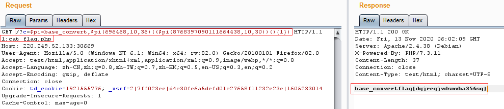 这里解释一下为什么会输出一个base_convert字符串,因为php中echo xx,yy,即输出xx和yy的结果,xx和yy中间用逗号隔开,echo都能输出。所以这里会把我们payload中的第一项输出出来。