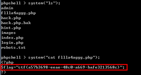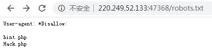 尝试打开robots.txt页面,发现2个隐藏页面:hint.php和Hack.php