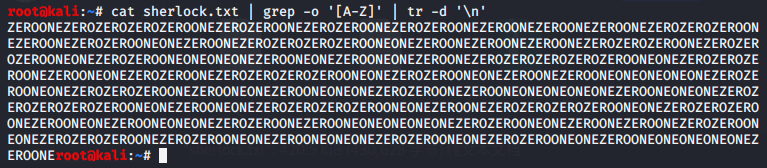 cat sherlock.txt | grep -o '[A-Z]' | tr -d '\n'