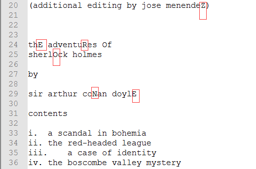 仔细观察文本,发现文本中有很多故意大写的字母。