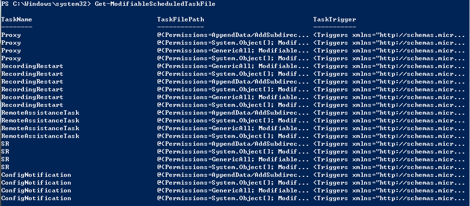 PS C:\Windows\system32> Get-ModifiableScheduledTaskFile