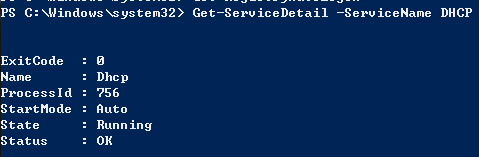 PS C:\Windows\system32> Get-ServiceDetail -ServiceName DHCP #获取DHCP服务的详细信息