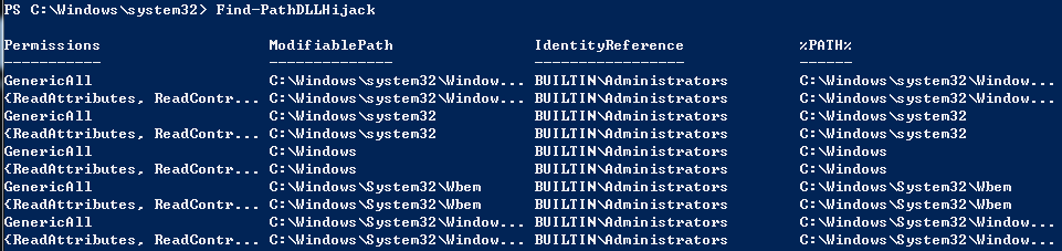 该模块用于检查当前%PATH%的哪些目录是用户可以写入的,输入以下命令即可执行该模块。