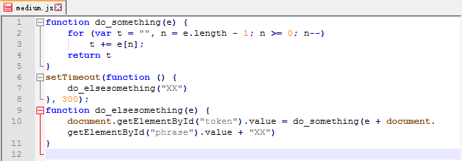 于是我上网找了一个JS在线运行工具,重新编辑了一下medium.js,得出了token值:XXsseccusXX