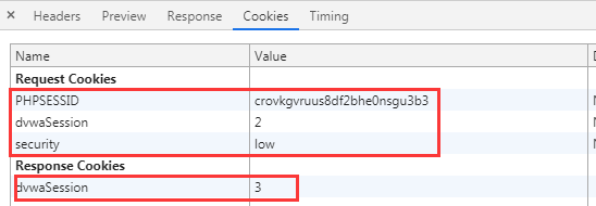 dvwaSession=2; security=low; PHPSESSID=crovkgvruus8df2bhe0nsgu3b3