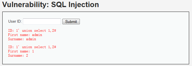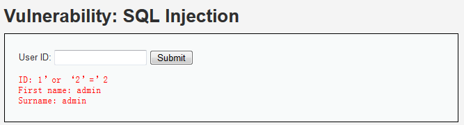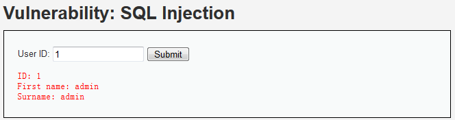 可以看到,Low级别的代码对来自客户端的参数id没有进行任何的检查与过滤,存在明显的SQL注入。