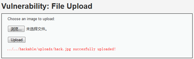 采用%00截断的方法可以轻松绕过文件名的检查,但是需要将上传文件的文件头伪装成图片,由于实验环境的php版本原因,这里只演示如何借助High级别的文件包含漏洞来完成攻击。