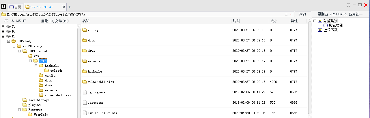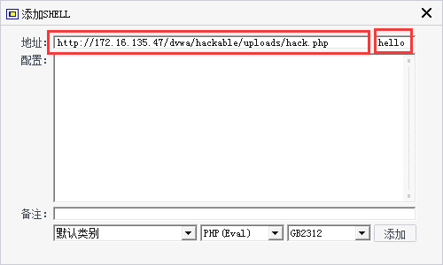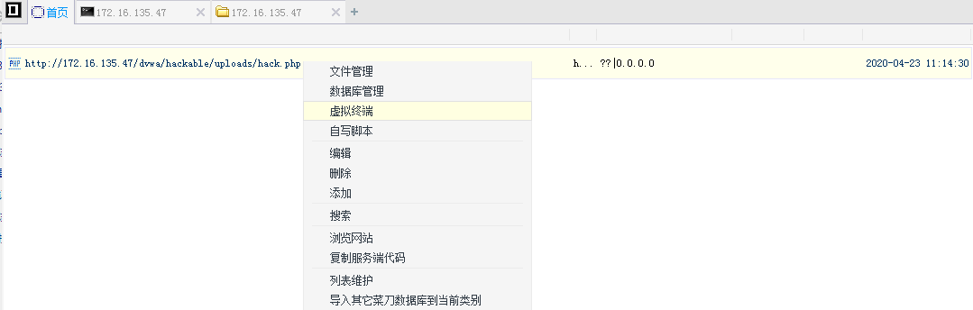 地址栏填入上传文件所在路径http://172.16.135.47/dvwa/hackable/uploads/hack.php,