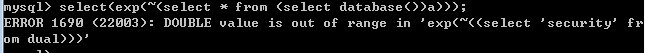 (3)我们通过子查询与按位求反,造成一个“DOUBLE value is out of range”错误,并借由此注出数据。