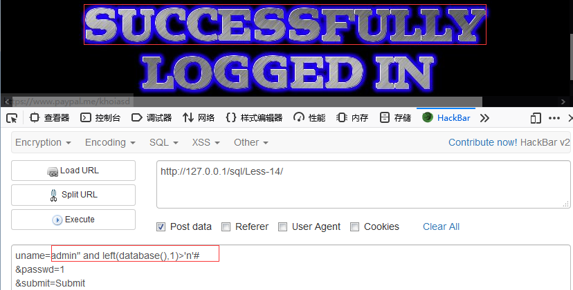 uname=admin” and left(database(),1)>’n’#&passwd=1&submit=Submit