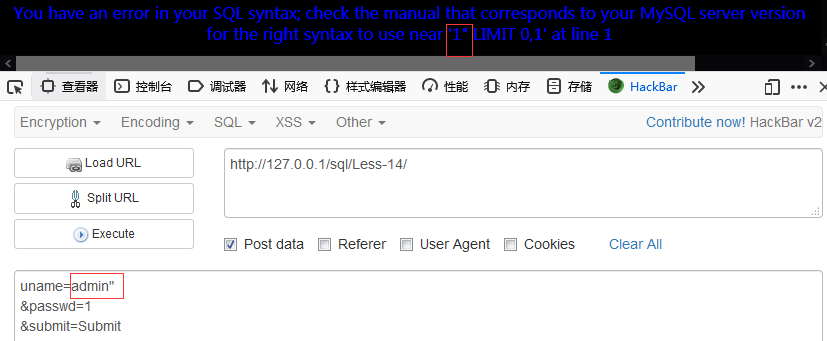 这里和less13一样,主要是利用盲注。可以使用布尔注入或者报错注入。