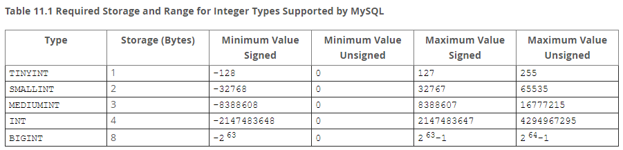 (来源:http://dev.mysql.com/doc/refman/5.5/en/integer-types.html)
