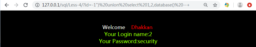 输入?id=1″) order by 4 –+ 报错,说明该数据表中字段数为3。